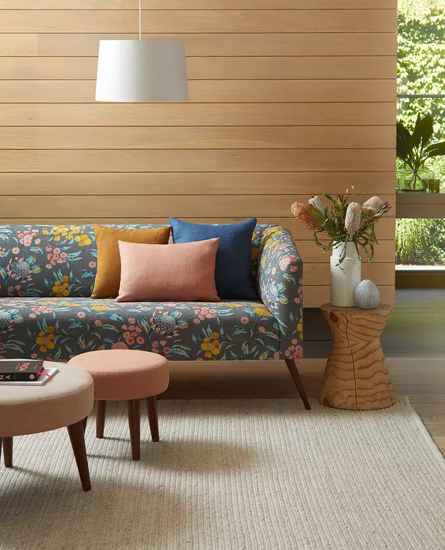 For a retro Australian bush look, Hinterland, Kiko and Kumi ranges by Warwick offer a selection of fabrics that pair back with the likes of Keylargo. These fabrics blend and harmonize together to create a retro aesthetic and eclectic style – reminiscent of beautiful Australian flora and fauna. Each one adding beautiful texture, depth and design in a selection of colourways that play to the Keylargo’s tonal nature.