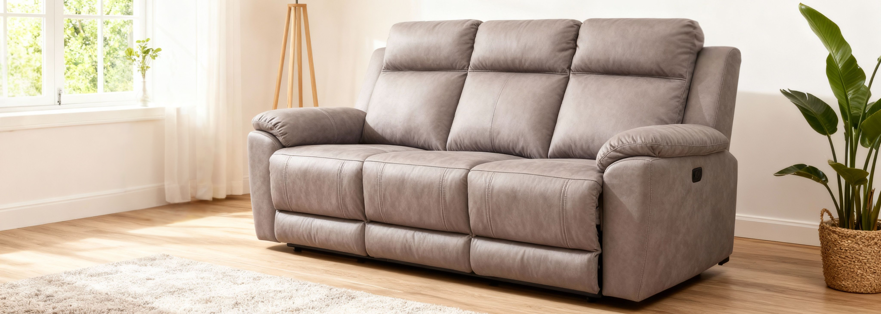 Not all recliner sofas need to be electric. Manual recliner sofas give flexibility in placement so you can set them up in the middle of a room or away from power outlets. Enjoy a range of colours, fabrics and leathers.
